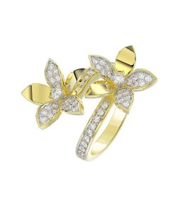 The Wild Flower Yellow Gold Ring features a yellow gold wrap band set with pavé diamonds and complete with a duo of dynamic teardrop-shaped diamond and yellow gold flowers.
