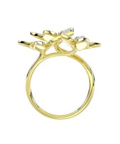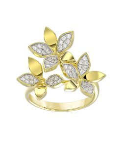 The Wild Flower Yellow Gold Ring features a yellow gold open band set with pavé diamonds and complete with a trio of dynamic teardrop-shaped diamond and yellow gold flowers.