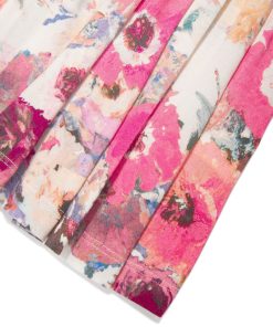 The Marchesa Jersey Dress features a round neckline, short sleeve, and pleated skirt. The a-line dress is complete a Marchesa signature across the bodice and signature Marchesa watercolor flowers blooming on the skirt.