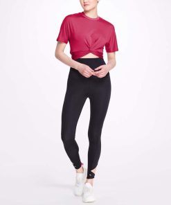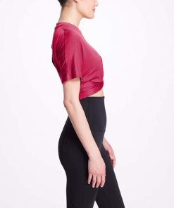 The Audree is a lovely azalea pink tee made of super soft lightweight jersey fabric. The Audree t-shirt features short sleeves, an overlapped open cut out back, front tie bunched knot detailing, and a crew neckline for a sexy and sophisticated silhouette.