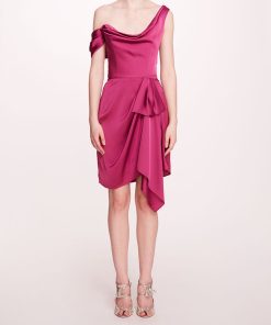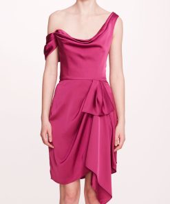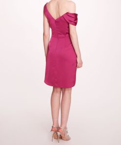 Marchesa Notte Bridal Women’s Eveningwear Asymmetrical Satin Mini Dress | Moody Orchid