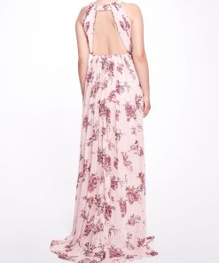 Marchesa Notte Bridal Women’s Eveningwear Blush Pink Floral Halter Neck Gown With Open Back And Keyhole Cutout | Blush