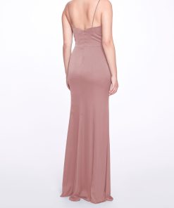 Marchesa Notte Bridal Women’s Eveningwear Blush Pink Floral Halter Neck Gown With Open Back And Keyhole Cutout | Blush