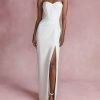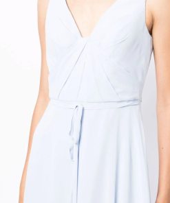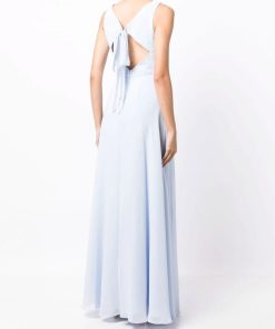 Embrace a graceful option for any event in the Calabria gown. Featuring an A-line silhouette, a graceful cinch waist tie, a deep v-neck, and a bold cut-out detail on the back, this dress exudes grace.