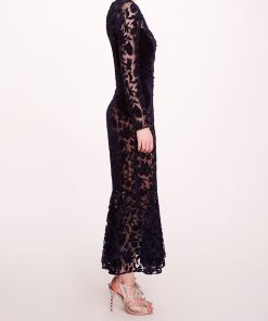 Elevate your style with the Long Sleeve Velvet Midi Dress, featuring cutwork detailing that adds a touch of sophistication to this cocktail essential. The solid velvet accents on the sides and waistline beautifully enhance your silhouette, creating a flattering and chic look.