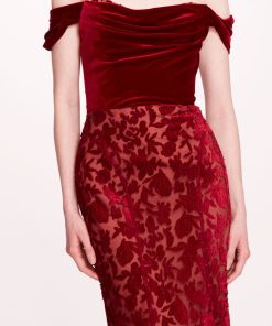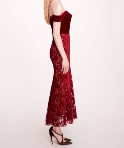Marchesa Notte Bridal Women’s Eveningwear Velvet Cutwork Midi Dress | Burgundy