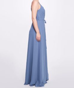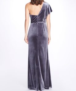 Marchesa Notte Bridal Women’s Eveningwear Steel Blue Adria One-shoulder Velvet Gown | Steel