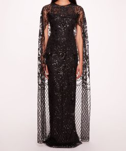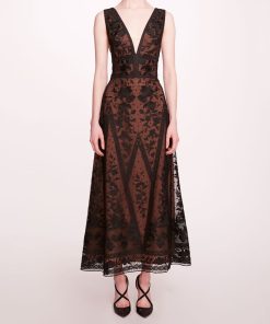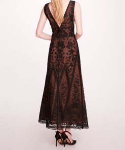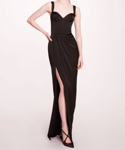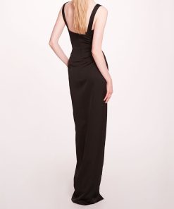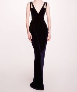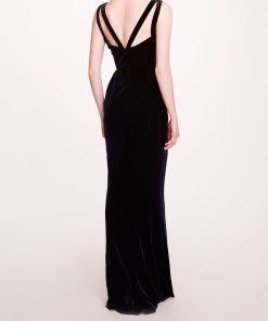 Marchesa Notte Bridal Women’s Eveningwear Sleeveless Velvet Column Gown | Midnight Black